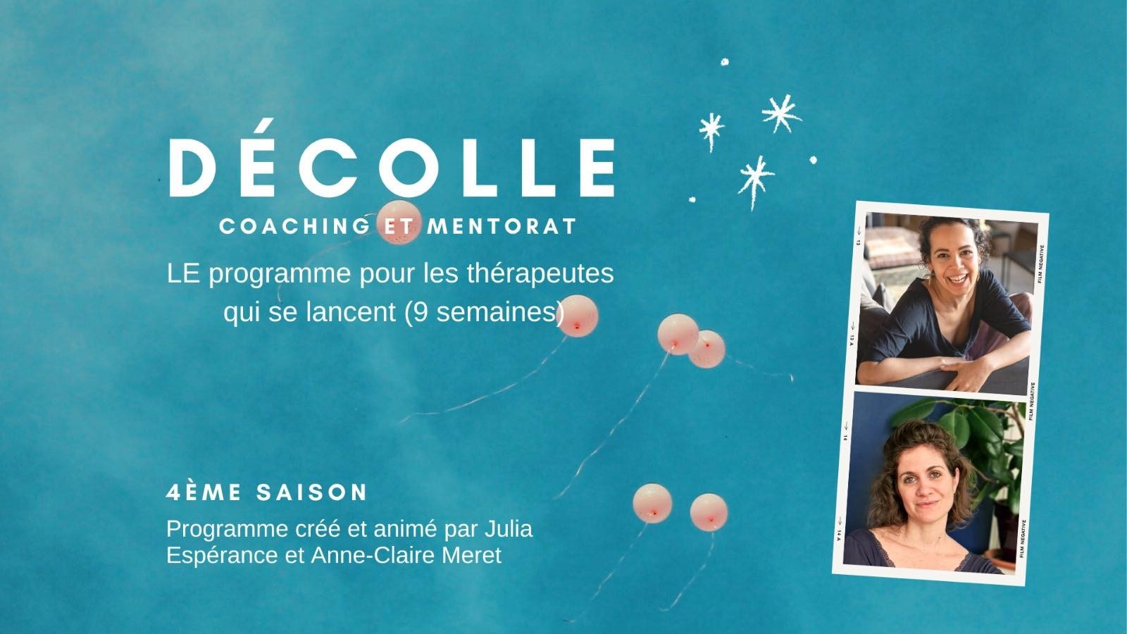 "Anne-Claire et Julia forment un très beau duo qui connaît sur le bout des doigts les problématiques des graines de thérapeutes. Elles les abordent tout en bienveillance et avec non moins de puissance ; j’ai relevé des challenges que je n’aurais jamais fait seule. Le format de groupe est aussi très stimulant pour réaliser ses défis sans les remettre à plus tard. Ce fût pour moi un gros coup de boost tant au niveau intellectuel qu’émotionnel. "<3